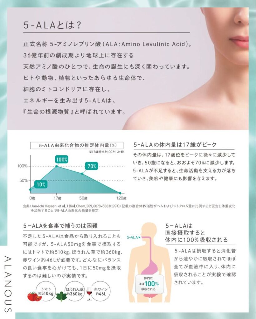 究極のアンチエイジングサプリ ミルボン『ALANOUS(アラナス)』5-ALA(ファイブ-アラ) 美容・心身・免疫に効果あり 尼崎美容室 ヘッドスパ&トリートメント INFINITY