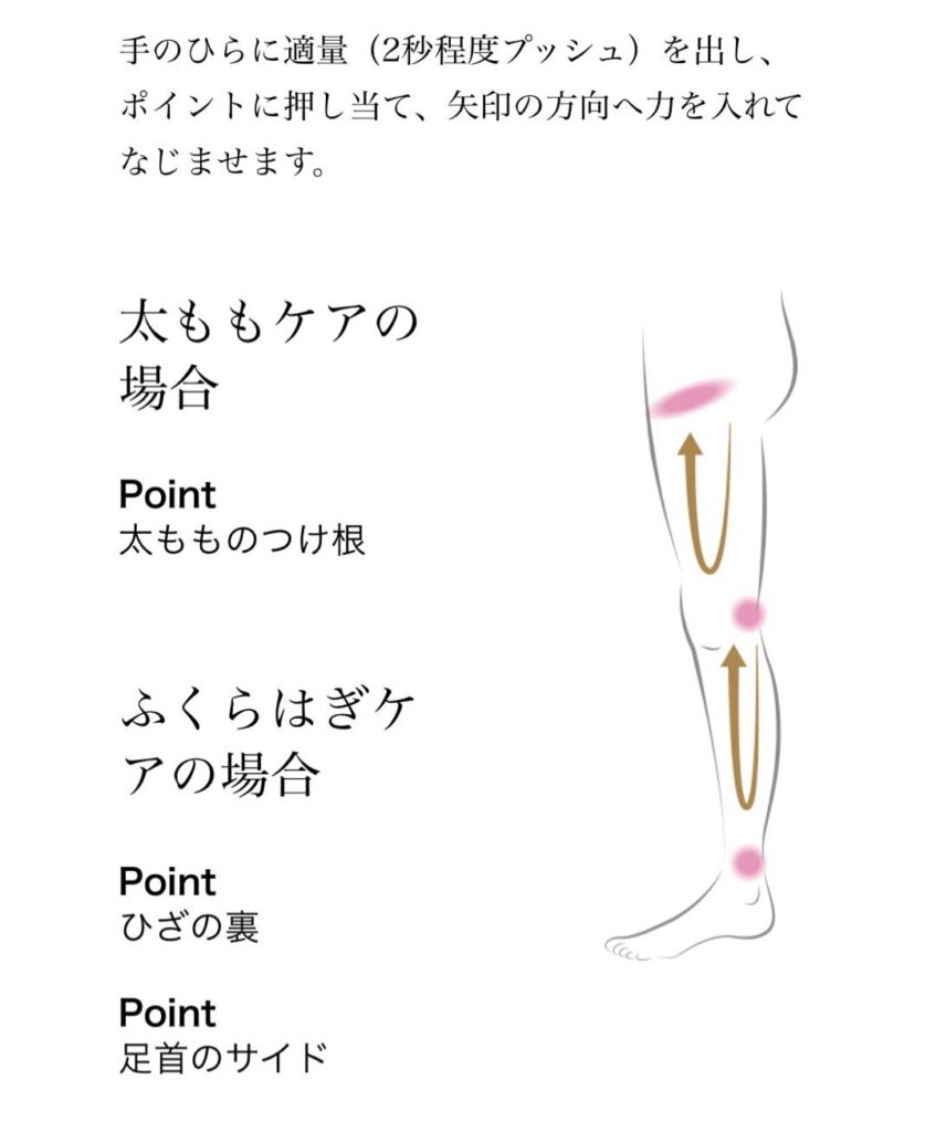 付け根→膝方向へ流す