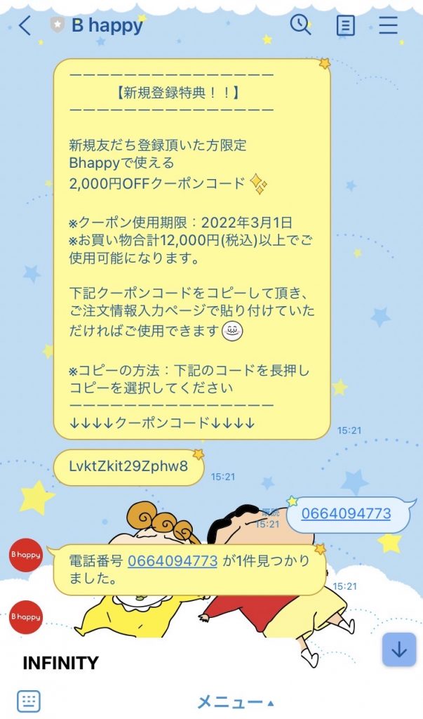 現在新規でご登録いただいた方には、お得な5000円分のクーポンをプレゼントしていますので、オンラインストア「B happy」でのご購入がおすすめです!