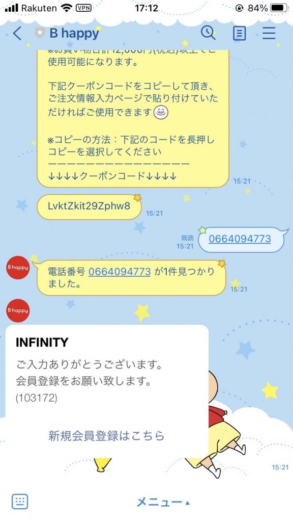 以下の番号を、LINEのトーク画面にそのまま入力してください