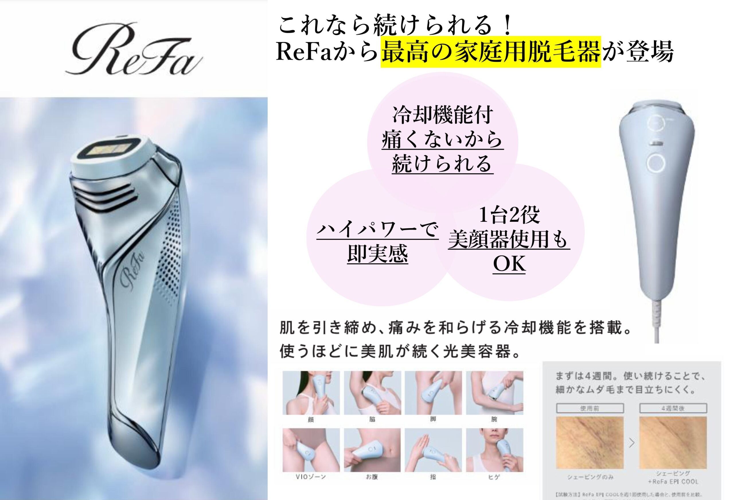 リファエピクールとは?冷却×Gentle IPLで痛みを抑える光美容器|肌色センサー搭載の安全なムダ毛ケア