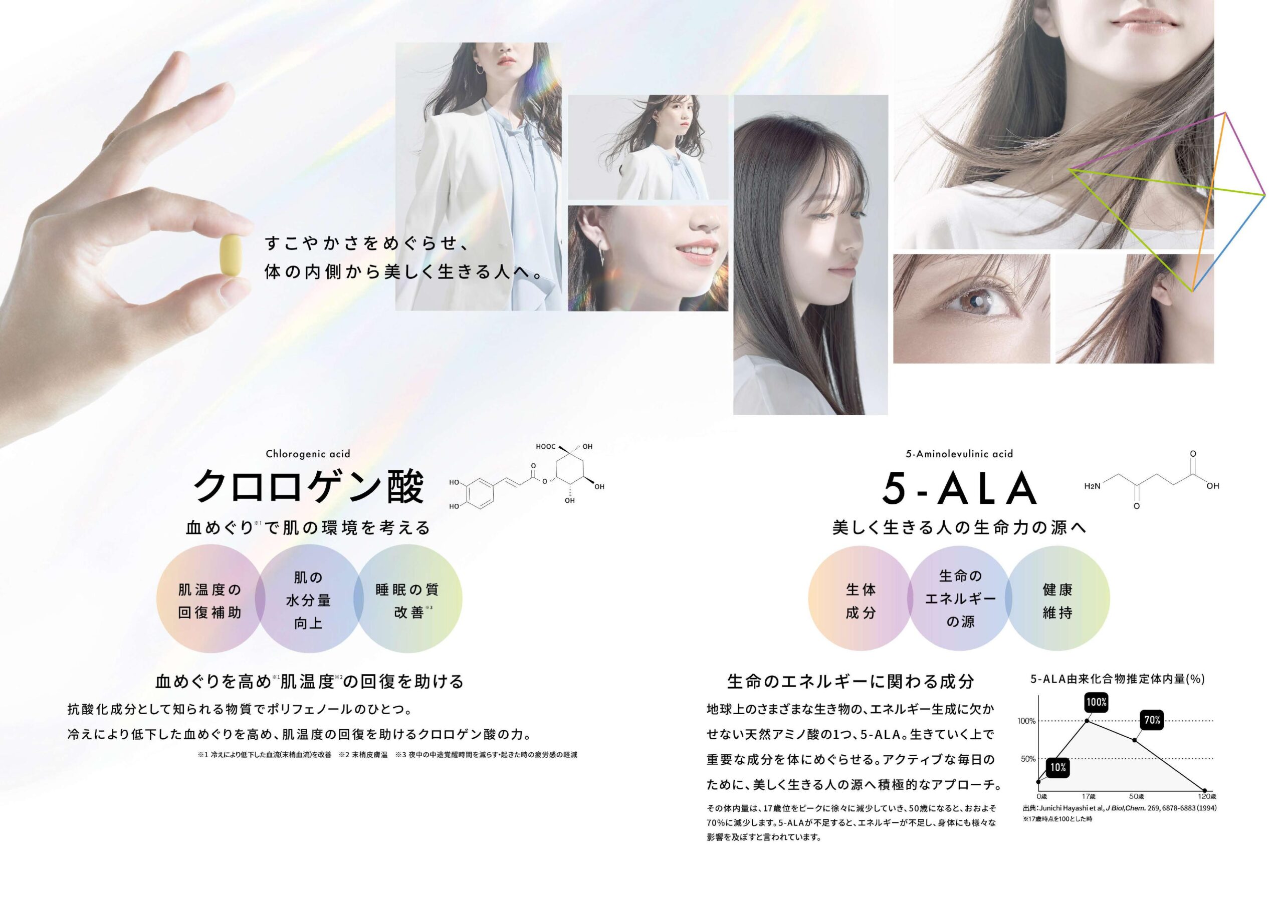 • 細胞レベルから美しさをサポート:5-ALAとクロロゲン酸が細胞のエネルギー生成と血流改善を促し、髪と肌の健康を根本から整えます。
