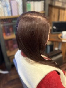 通常のカラー施術の中で、艶を意識した設計を行っています。