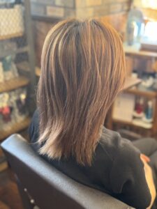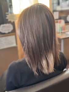 - カラーはブルーアッシュで透明感とツヤ感をプラス