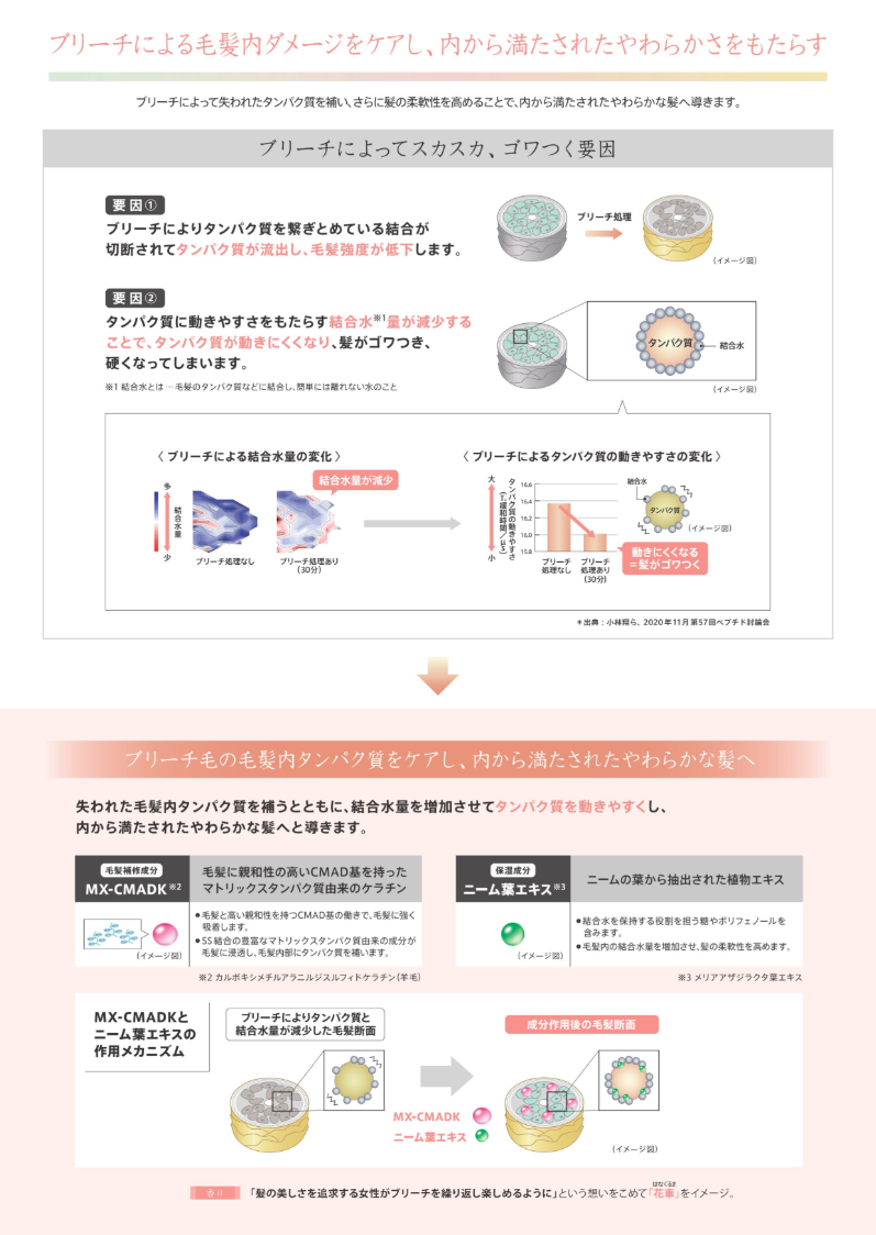 ブリーチやカラーで流出したたんぱく質、残存しているたんぱく質の両面をケアし、