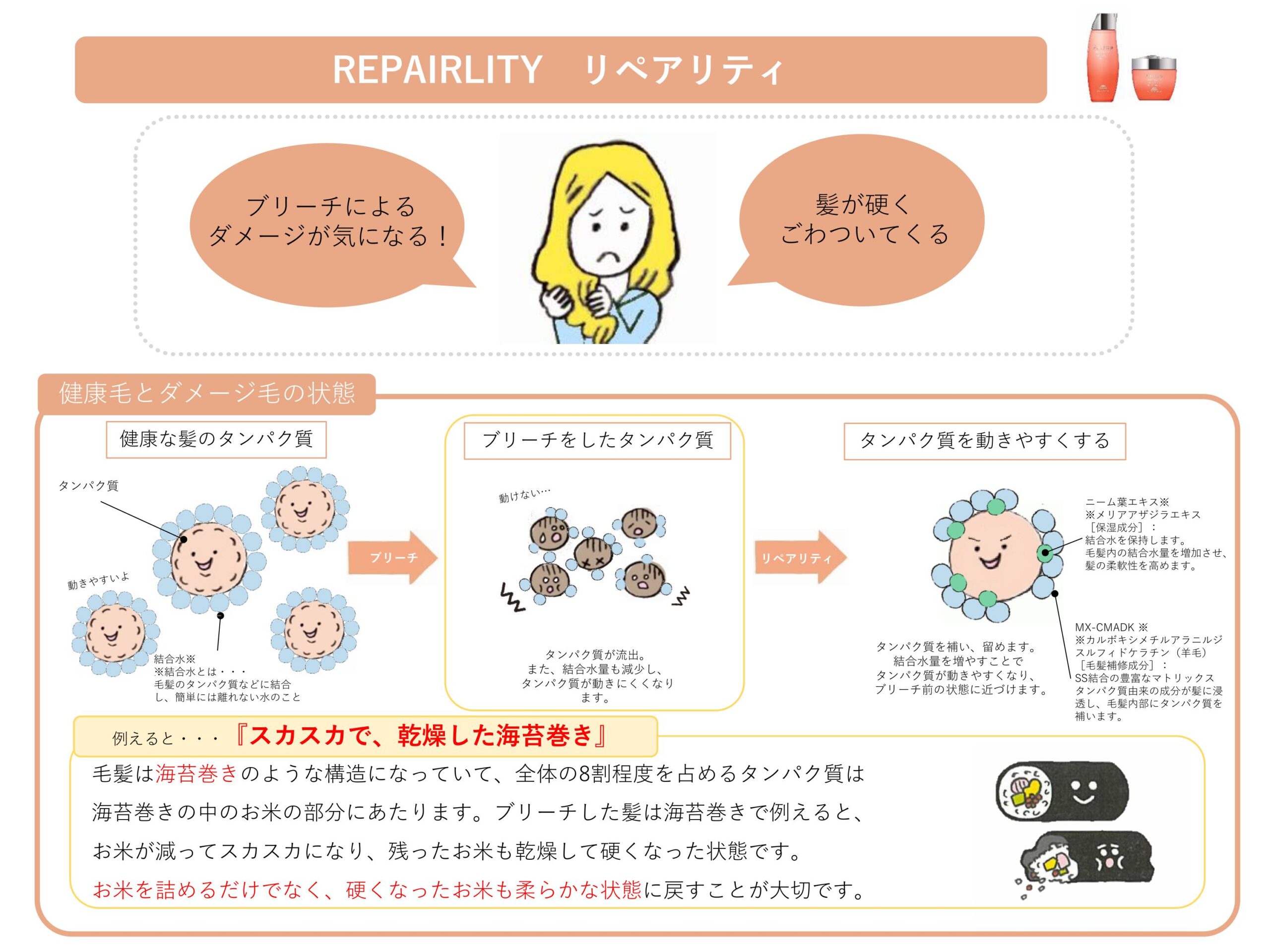 リペアリティは、ブリーチ毛の“中身不足”と“柔軟性不足”の両方に着目。