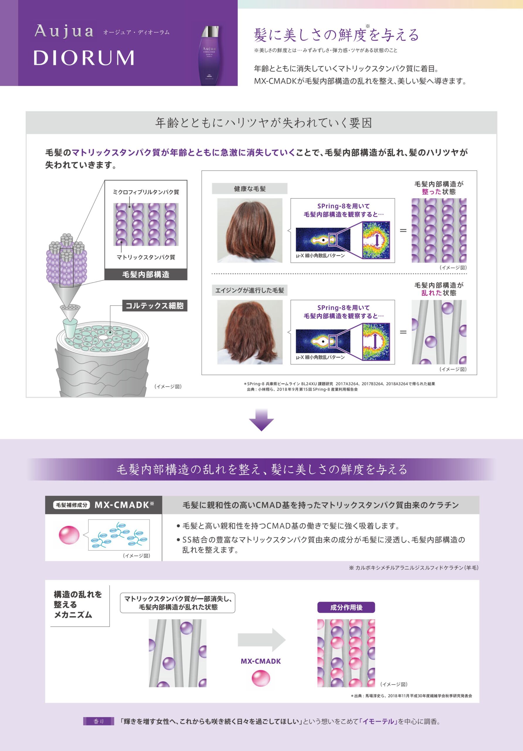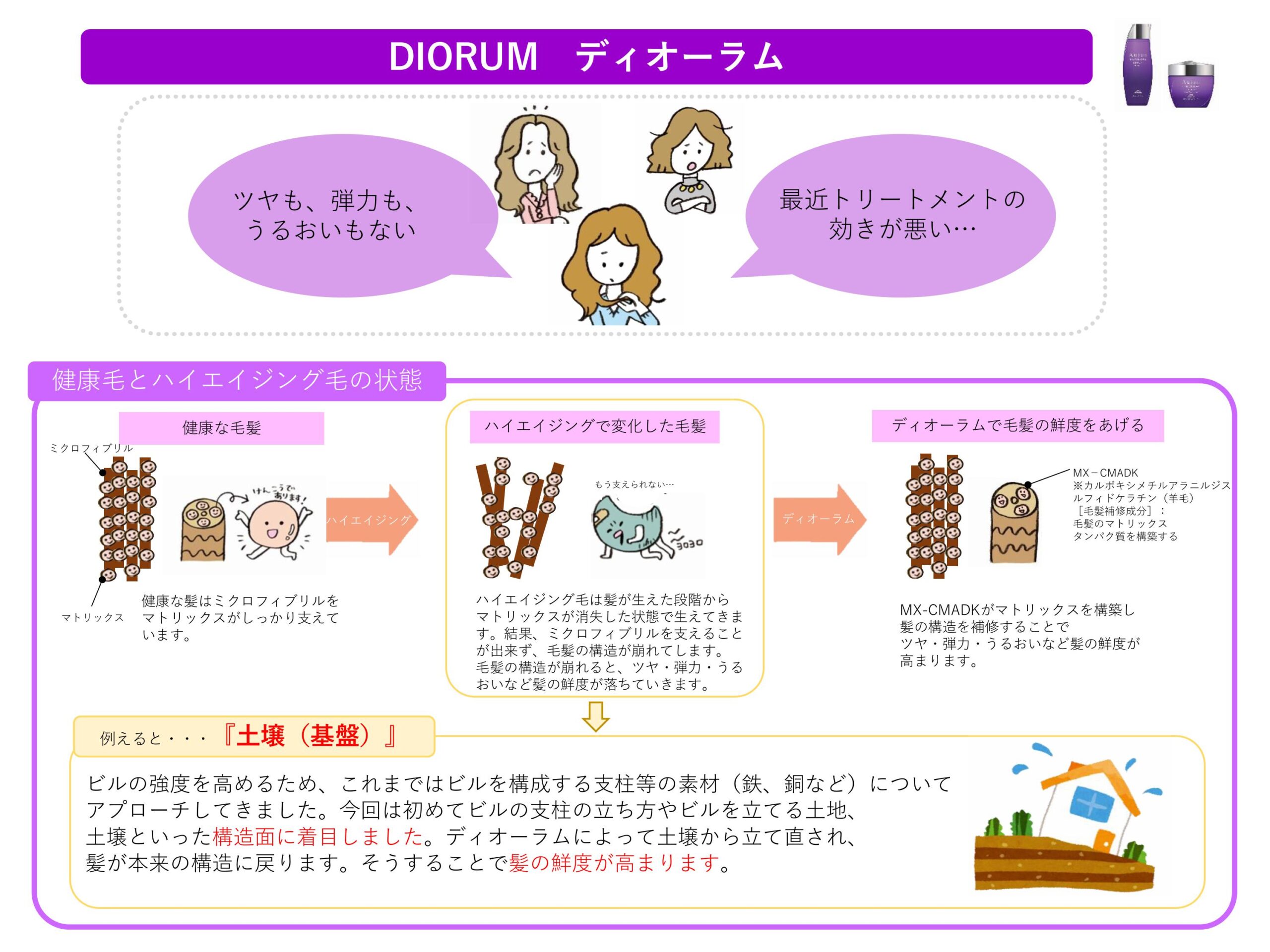 その中でもディオーラムは、エイジングによって失われた髪内部のマトリックスタンパク質に着目。