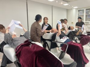 午後からは、実際のヘッドスパ実技トレーニングを実施。