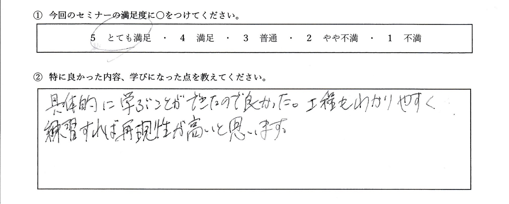 ● 満足度:5(とても満足)