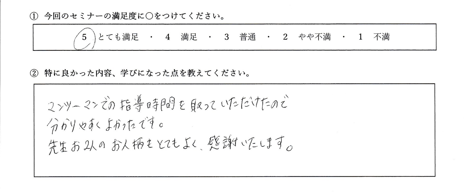 マンツーマンで指導時間をとっていただけたので分かりやすかったです。