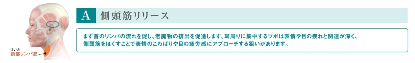 一般的なヘッドスパが皮膚を中心に動かすのに対し、Airy Spaはこれらの筋肉の可動域を広げることを目的としています。