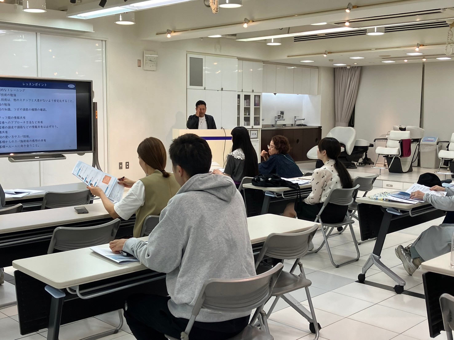 基本的な座学から始まり、今回は実技講習をメインに行いました。座学では頭筋やツボの知識もお伝えし、より深い理解を目指しました。