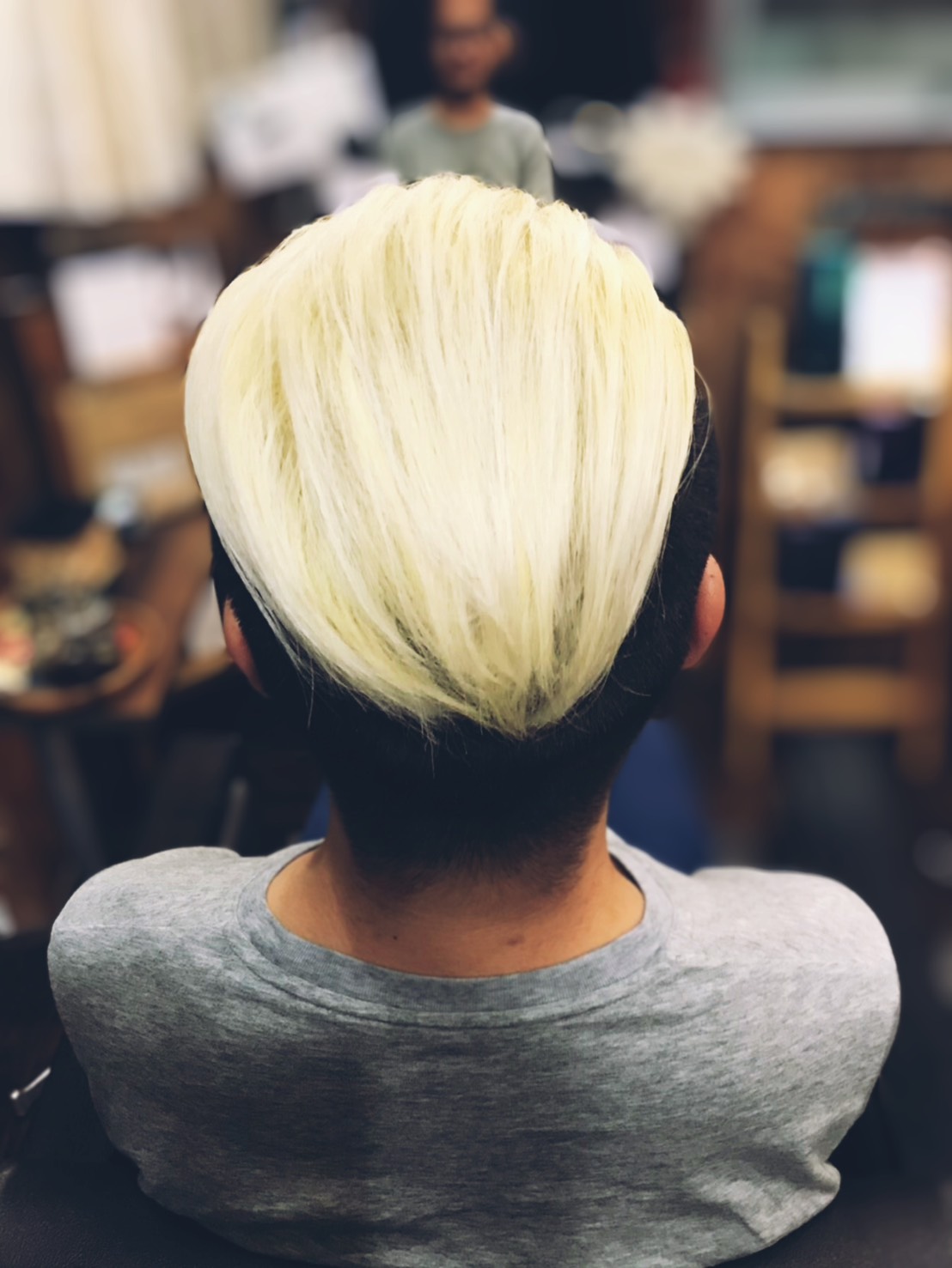 メンズのスリックバックアンダーカット×ホワイトブリーチ|1日で作らない積み重ね設計のカラー解説