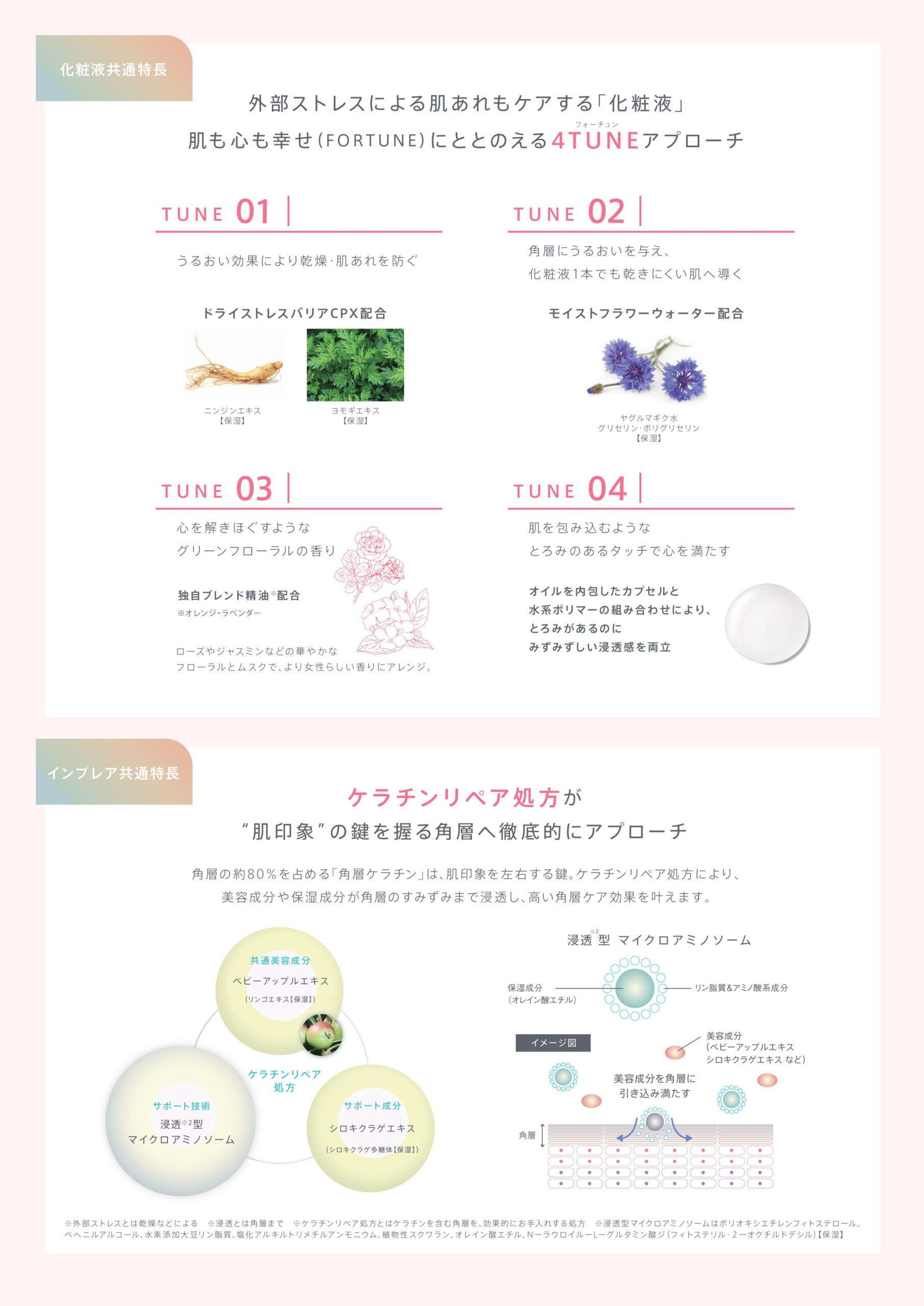 角層ケラチンに着目した設計が共通しています。