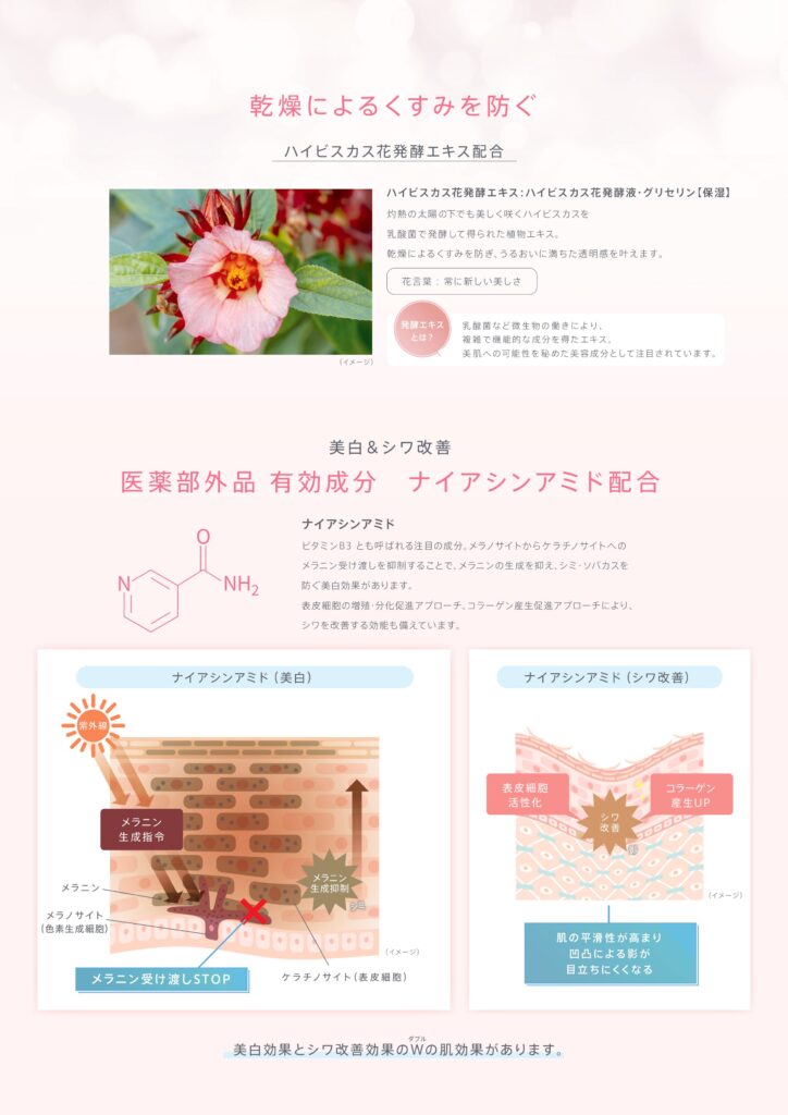 シワ改善に加えて、美白・くすみ対策まで同時に行う設計