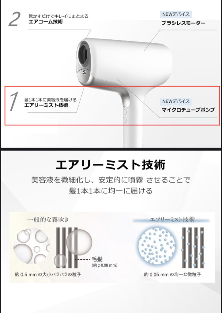 「乾かすだけで髪質改善が入るドライヤー」は、現時点でエルミスタだけです。